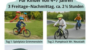 Tag 1 – Spielplatz Grimmenstein (12.06.26 15:00) Tag 2 – Pumptrack Wr Neustadt (19.06.26 15:00) Tag 3 – Wexeltrails Kids Area (26.06.26 14:00)